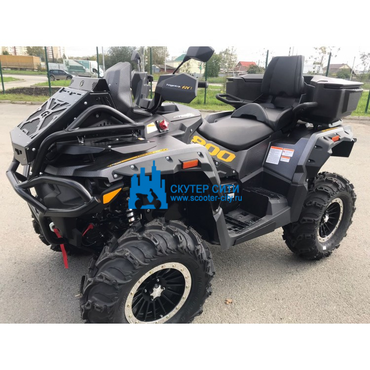 Топовая версия с выносом радиатора, исключающим перегрев двигателя из-за налипания грязи на радиатор. Высокий клиренс, большие колеса и передний силовой бампер создают эту модель реальным ATV вездеходом.